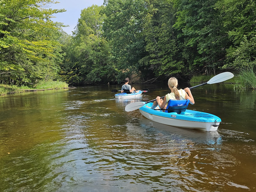 Nestled alongside the picturesque Big Sable River in Michigan, our location offers the perfect blend of serene natural beauty and thrilling water activities. Whether you're an intermediate or a seasoned paddler, our top-quality kayak rentals and friendly, knowledgeable staff ensure a memorable experience. Discover the joy of gliding through calm waters, surrounded by lush landscapes and vibrant wildlife. Come visit us and make lasting memories on the water at Sauble River Kayaks!